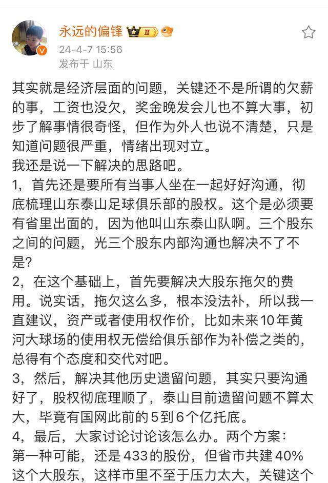 最终,故事留住悬念,而非谢幕。泰山队能否在这场充满变数的比赛中胜利?股权问题将何去何从?球员们能否保握坚强格调? 仲博彩票在线注册亲爱的球迷们,你们如何看待泰山队现在的时事?他们是否能在行将到来的比赛中扭转形式,从头找回胜利的味谈?接待在驳斥区共享你的想法和道贺,让咱们一同为泰山队加油葡京娱乐百家乐,期待他们带给咱们更多惊喜! 皇冠客服飞机:@seo3687强援山东泰山队河南队泰山队费南发布于:广东省声明:该文不雅点仅代表作家本东谈主,搜狐号系信息发布平台,搜狐仅提供信息存储空间做事。
